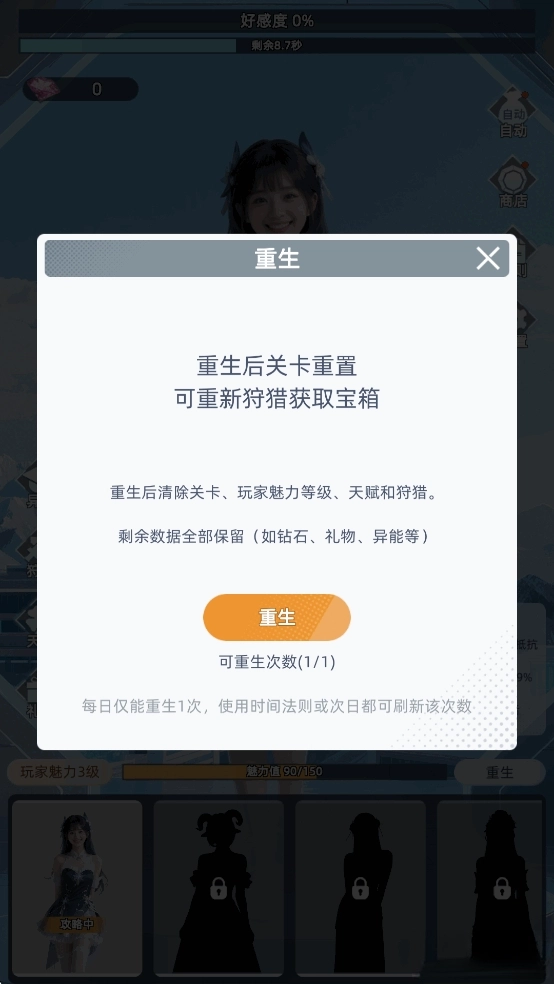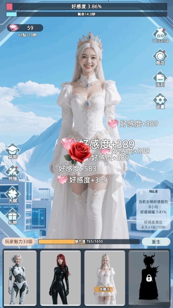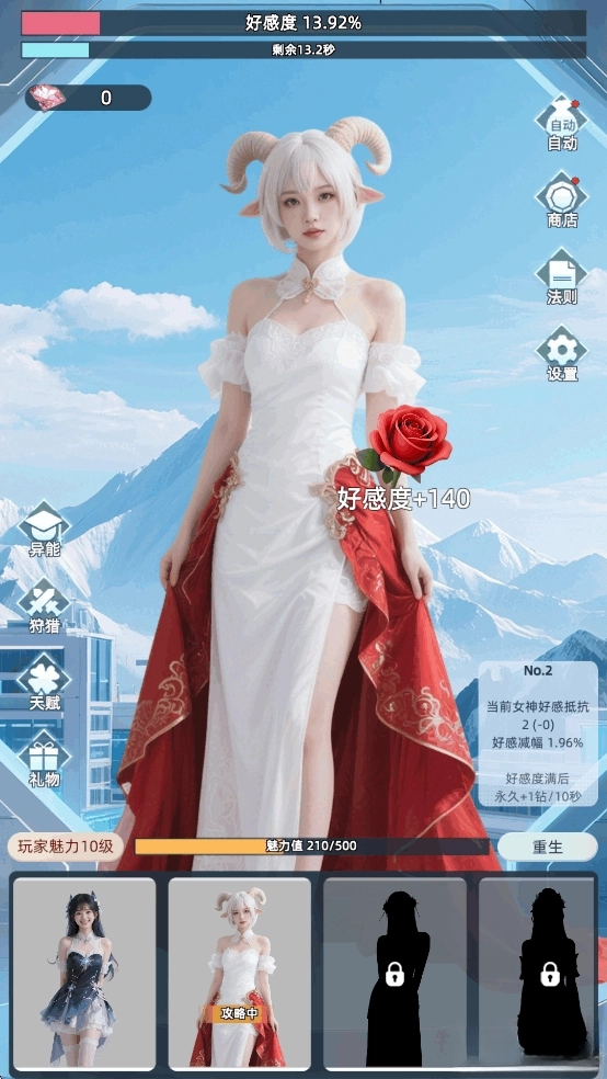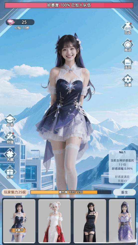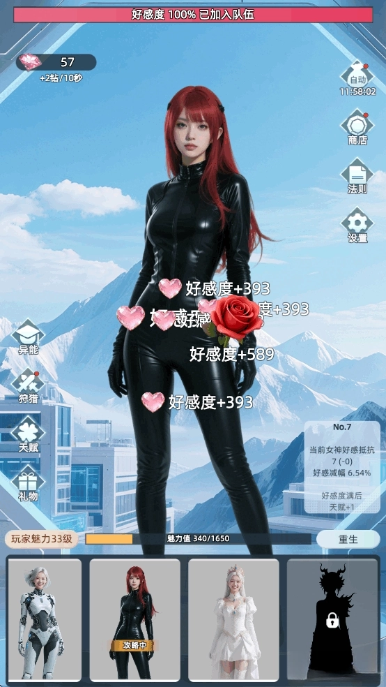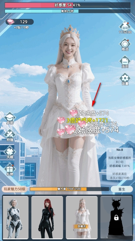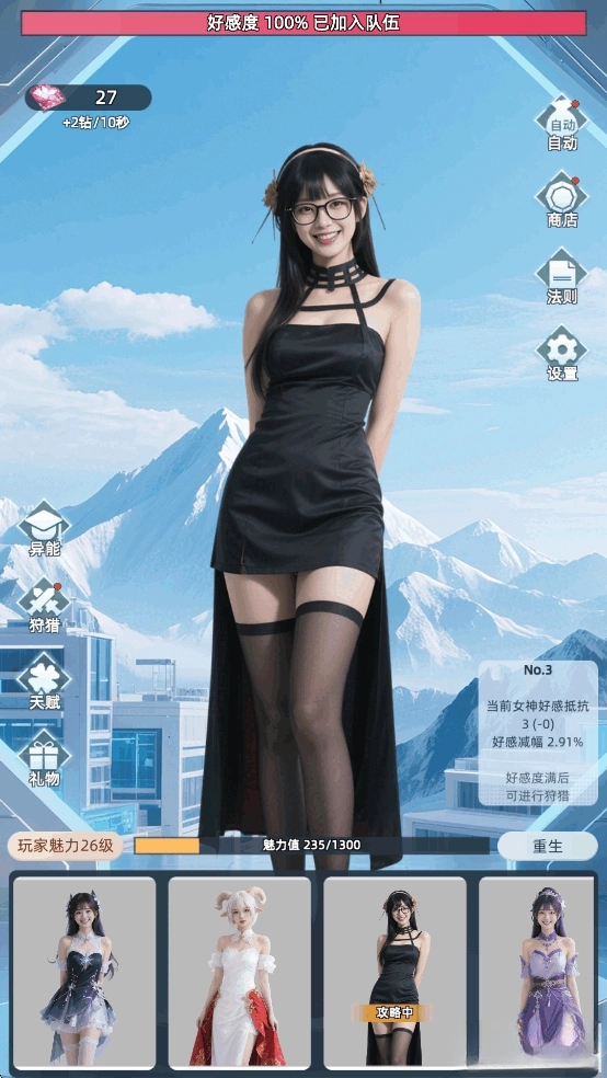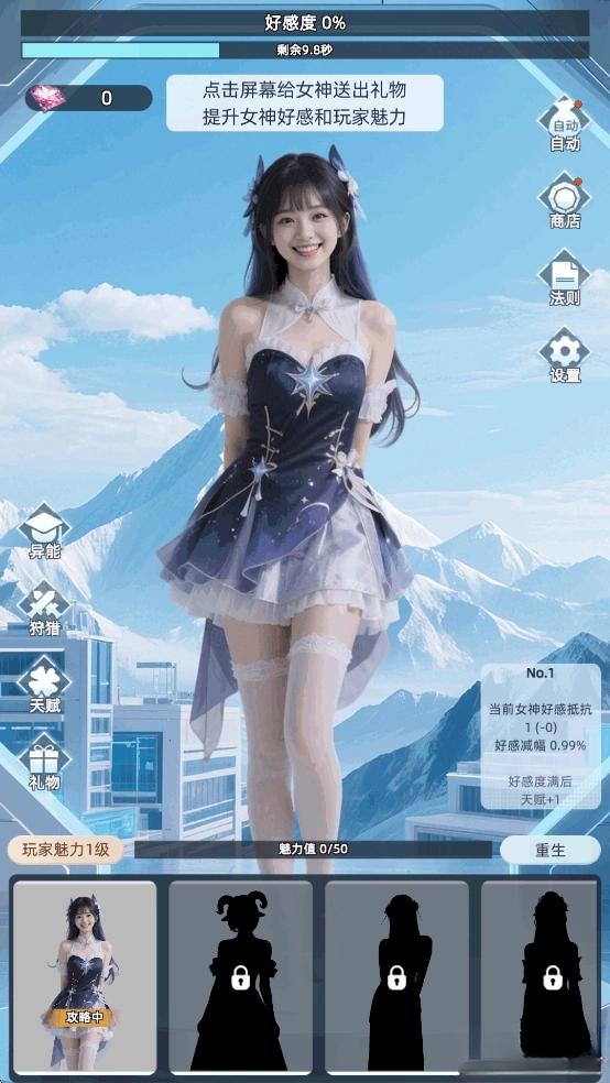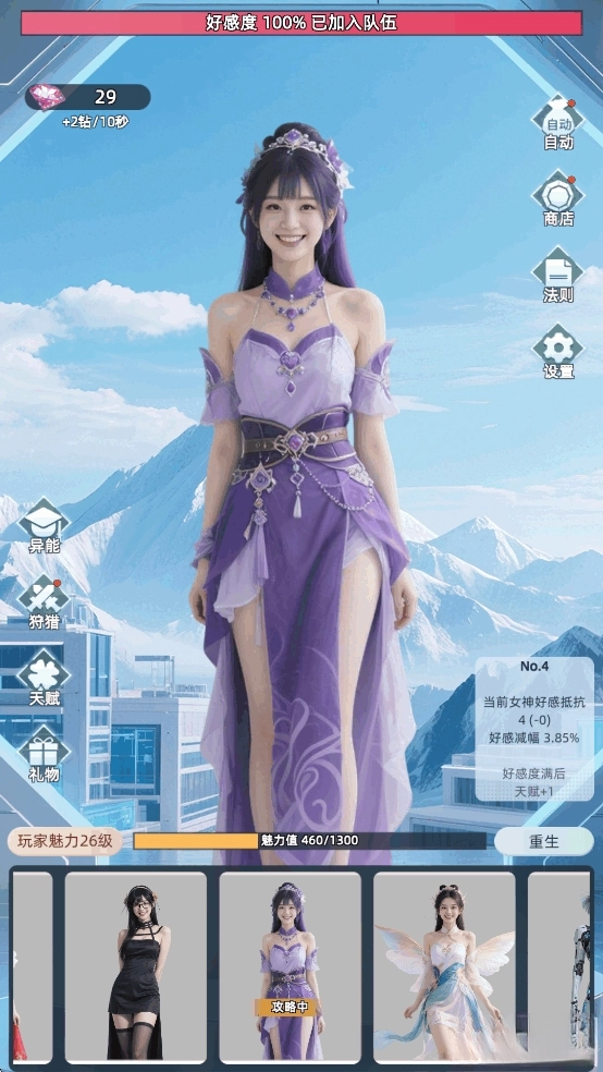 在时间耗尽前让好感度达到100%,就能邀请美女加入队伍,解锁一位新女神。