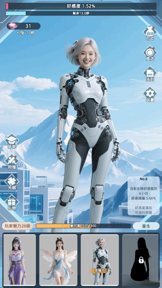 【女神羁绊,核心战力】招募性格迥异、能力超凡的女神们。每位女神都具备强力的专属技能,出战女神数量越多,相互间的羁绊便越深厚,带来的属性加成也会愈发惊人!你的专属女神团,便是你最强大的制胜法宝。