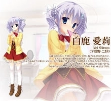 在ライゼルグ留学的温柔女孩。 家务有关的一切精通。 措辞礼貌,为他人尽心尽力,平常非常有女性气质。 只不过,因为特别想别人来向她来求助,以至于有着“想要侍奉主人”的愿望。 也曾对亲近的人提出“做我的主人吧”这样的要求。(清水爱同时也是柚子社第六作DRACU-RIOT中艾莉娜的CV)