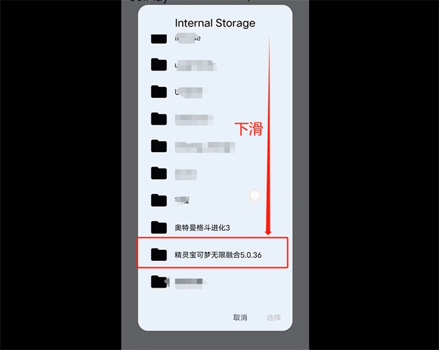 在文件栏中下滑(基本在最下端)找到【精灵宝可梦无限融合】文件夹,点击它