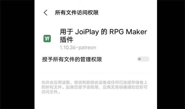 弹出弹窗RPG Maker请求储存权限,请点击【好的】并打开权限按钮