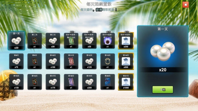 每天登录都能免费领取珍珠、装饰等各类奖励,而且累计登录的天数越多,能拿到的奖励就越丰厚。