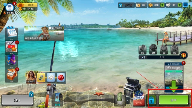 3、点击右下角的“抛竿”来抛竿。