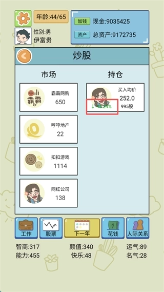 角色的财富主要通过职业薪资、投资收益、遗产继承等方式获得。职业晋升和工作表现会带来薪资增长;玩家可利用积累的财富进行投资,如股票、房产、商业项目等,不同投资具有不同的风险和收益;偶尔也可能通过继承遗产获得一笔财富。