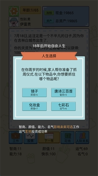 5、前17年就是17个选项,玩家可以根据选项来提升自己的各项属性。