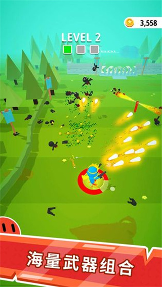 战场上的敌人以不同颜色的兵种集群出现,各自拥有独特的攻击模式。你需要灵活走位,在战场上穿梭,避免陷入重围。面对成群敌人时,看准时机释放范围技能,可实现高效清场,体验“一扫一片”的爽快感。