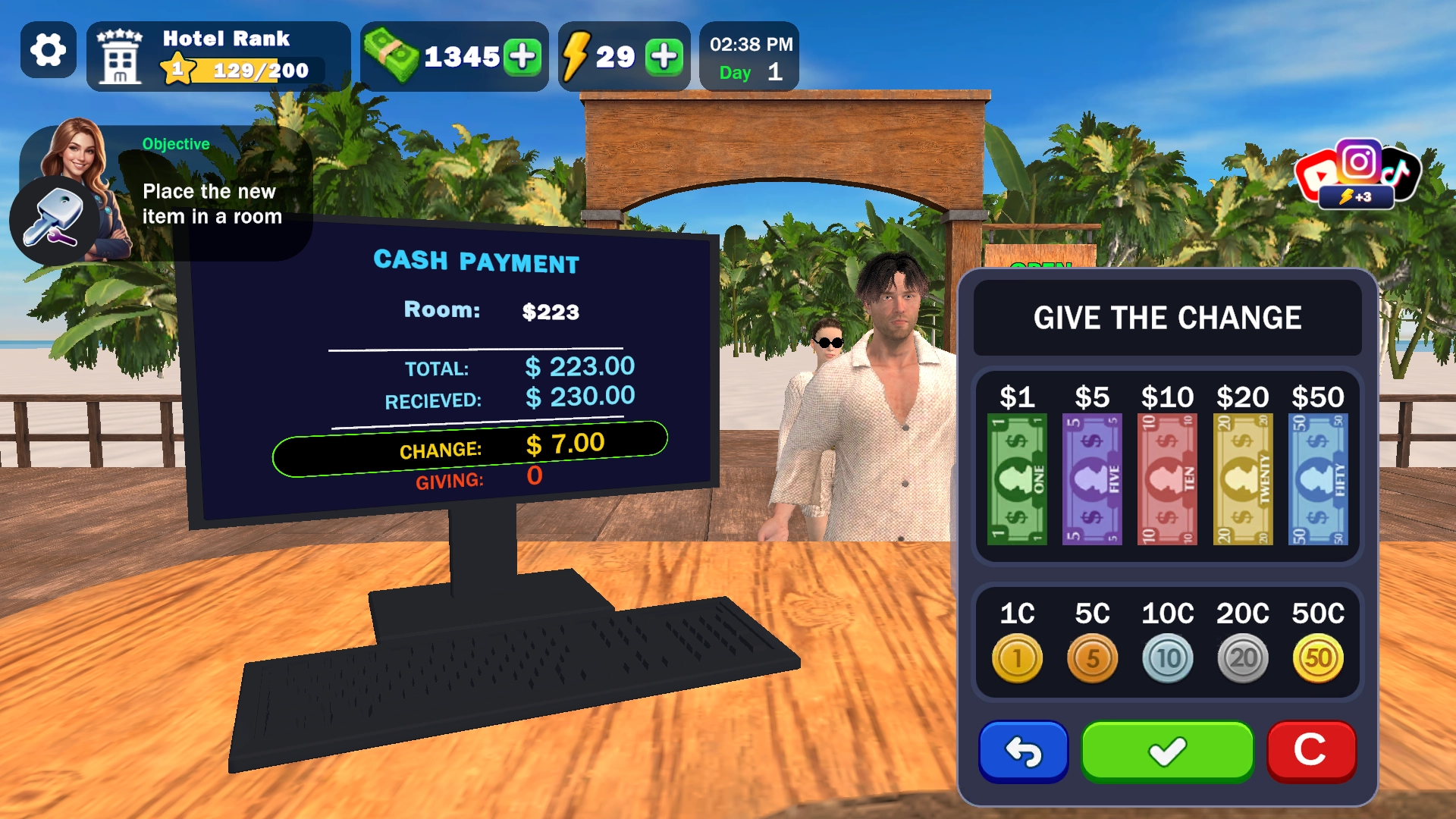 海滩酒店模拟器游戏中文版(Beach Hotel Simulator 3D)是一款以热带海滨为背景的3D模拟经营手游。在这款游戏中,玩家将扮演一位沙滩酒店老板,开始一段从零开始的创业之旅。游戏从购买地皮开始,玩家需要凭借自己的智慧和努力,不断升级和装修酒店,以提高利润。通过有效的管理和策略,玩家可以逐步将酒店打造成一家远近闻名的海滨度假胜地。这款游戏结合了模拟经营和策略元素,让玩家在享受创业乐趣的同时,也能体验到酒店管理的挑战和成就。