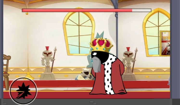 第二关,操作左边的按钮让国王下来,然后过去杀掉国王就可以了。