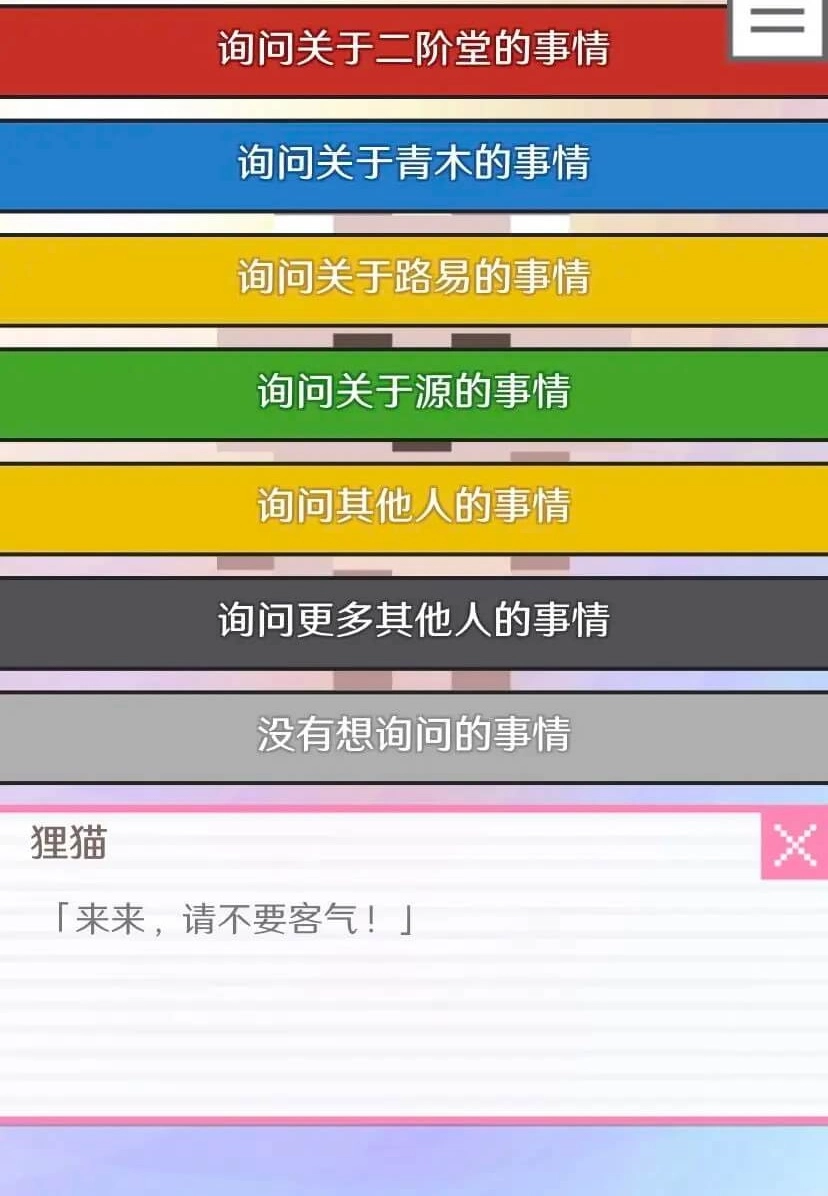 关于狸猫线!建议四位非隐藏人物的好感度处于无感或讨厌状态时,就可以进入啦✓
