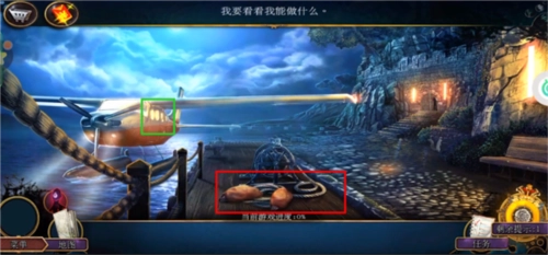 在《密室逃脱22:海上惊魂》里,第一步要获取下图红框标注的浮标与绳子;接着把绳子用到绿框的飞机上,之后点击飞机门使其放大,进入后就能拿到公文包。