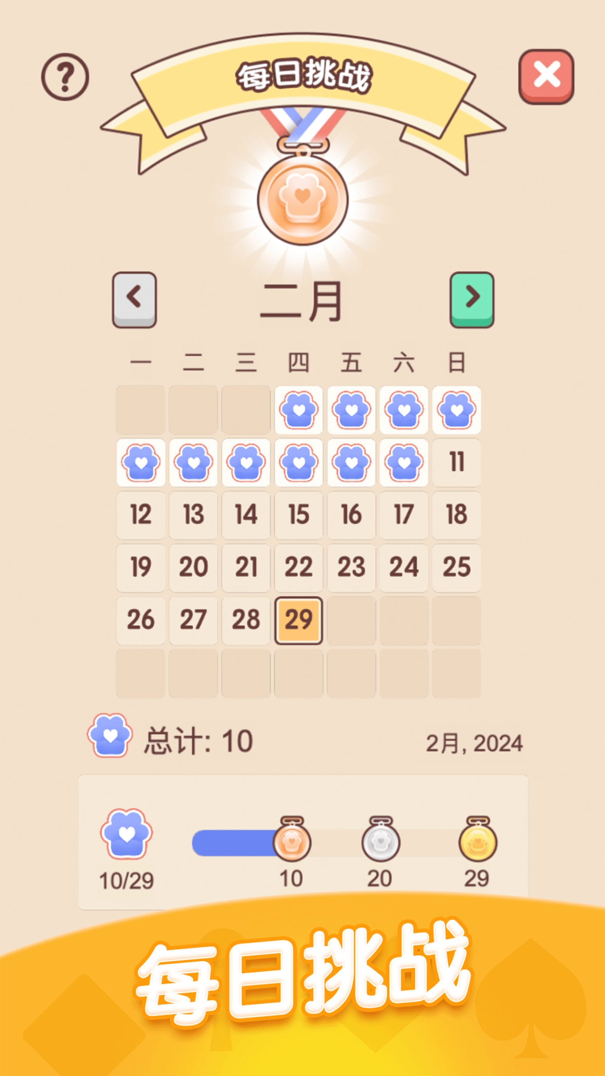猫咪纸牌是一款主打萌猫元素的治愈系纸牌接龙消除游戏,它把经典又耐玩的接龙玩法和软萌可爱的猫咪养成巧妙结合,为玩家在碎片化时间里提供了一个解压的好选择。游戏运用清新治愈的卡通风格,暖色调的场景配上精致温馨的布局,每只猫咪都有着圆滚滚的模样和灵动的神情。你能够通过闯关挑战、完成每日任务或者签到,来获得大量奖励和装饰道具,自由打造专属于自己的独特猫咪小窝,赶紧来和猫咪开启一段温馨治愈的休闲旅程吧!