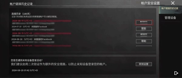 当非常用的授权装置或账号处于不安全环境时,将无法执行对其他平台的解除绑定或更换绑定操作。