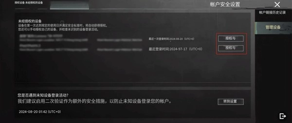 玩家能够对登录账号的安全装置进行管理,既可以撤销已授权装置的权限,也可以对新装置进行授权操作。