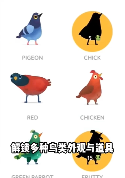 避开腐坏食物与陷阱,就能轻松过关,解锁多种鸟类外观与道具!