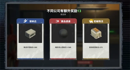 游戏开始前,你能自由组建一支1到4人的小队。开局时会面临选择:三家公司会给出不同的订单,每张订单都只有一天的时限,并且公司会提供工作船,将你送到工作地点的外围区域。