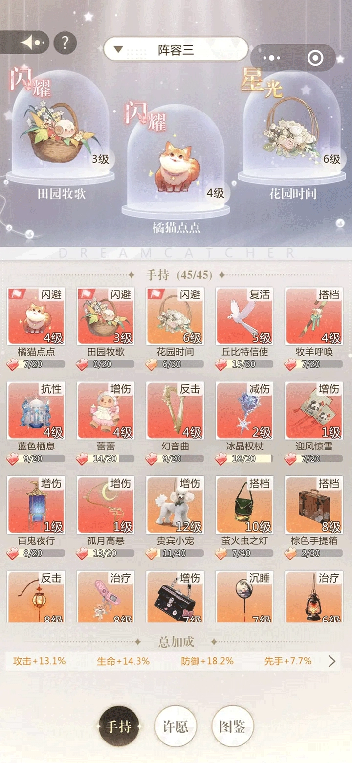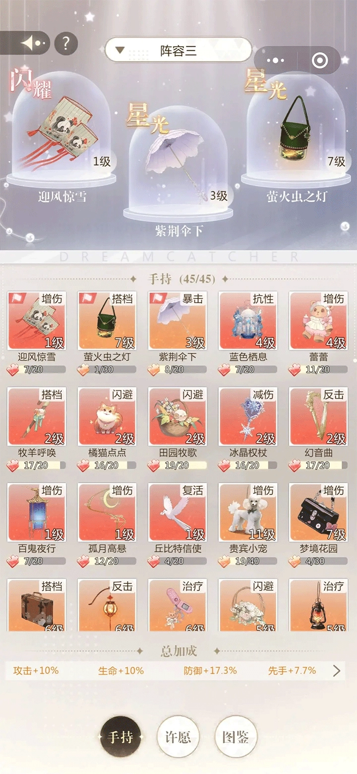 解锁手持后,可在养成界面进行抽取,通过消耗“许愿星”收集碎片,集齐后即可解锁或升级手持道具。部分抽取还有机会直接获得完整道具,带来强大增益。手持不仅提供额外属性加成,还具备独特技能,入梦师可根据自身战术自由搭配。完整套装还能在“图鉴”页面点亮,获得更强战力提升。