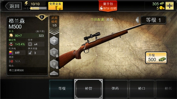 3、游戏里所有枪支都能进行升级,可升级的部件包括枪管、枪口、枪托、瞄准镜、红外线装置、弹夹容量以及弹药类型等。针对不同部位的升级,会带来不同方向的性能优化——比如有的提升精准度,有的增强持续射击能力。一把武器的综合品质,主要由火力(即杀伤力大小)、稳定性(准心的晃动范围)、最大变焦倍率、红外线持续时间和弹夹容量这几个核心维度决定。通常情况下,建议优先升级火力和稳定性这两项关键属性。升级操作需要消耗金钱或金条,且升级等级越高,所需的资源数量也会相应增加。