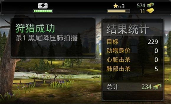 8、猎杀成功后,会出现结果统计。任务完成的金钱数,动物身价数,击杀部位数的总计为你的金钱数。