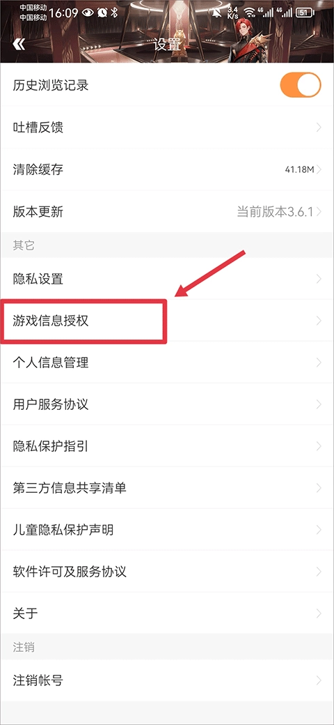 然后在设置中点击游戏信息授权