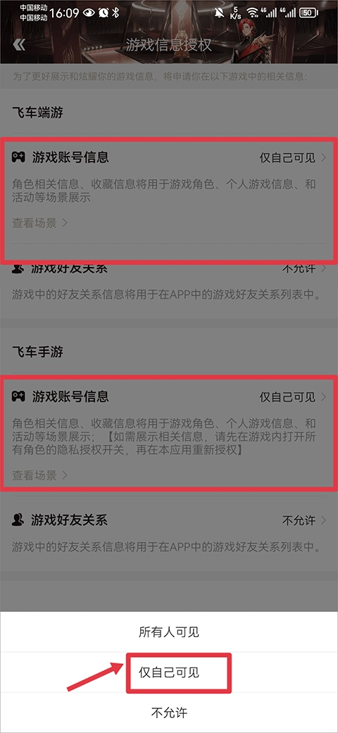 最后将游戏账号信息功能设置为仅自己可见即可