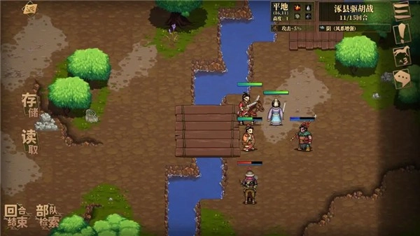 点击武将就能操控其行军位置,界面上可以查看武将的详细信息与技能说明。每个回合仅能选择技能释放或发起攻击其中一项操作,随后便会结束当前回合!请依据实际战况对战棋布局进行调整。