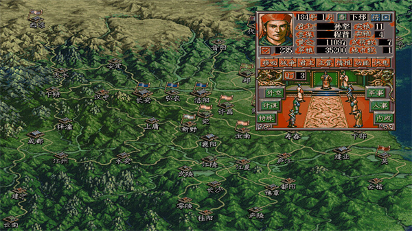 仍然延续了以城市为核心的全国大地图,各城市之间的道路根据真实地形还原,像长安、洛阳在当时道路四通八达,不仅自身发展繁荣,还是连接中原和西域的枢纽,实属兵家必争之地;而位于西南边陲的云南、建宁,只有北上成都这一条道路,虽然难于发展,但是偏安一方敌人也很难打过来,不同位置城市有着不同的战略价值,这也是光荣三国志系列玩法核心元素之一。