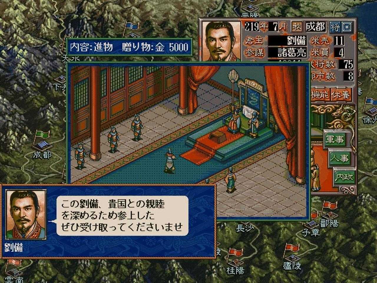 发售后获得巨大成功,移植到家用主机自然是顺理成章,先是1996年推出了世嘉土星版,随后1997年推出了索尼PS版,值得一提的是都推出了繁体中文版,而且在游戏的剧情、事件等动画中,使用了央视版《三国演义》片段,真人演出让游戏代入感极强,而且在当年多语言技术不发达的环境下,也是主机平台为数不多的官方中文游戏之一,让很多玩家从此接触到光荣三国志系列。