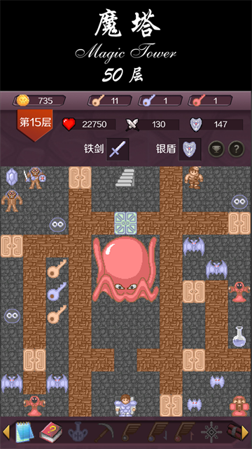 24层魔塔手机版是经典怀旧策略RPG游戏魔塔的移动端重置版本,完美还原了原版24层魔塔的全部内容、数值和玩法,玩家将扮演勇士闯入高耸的魔塔,收集宝石、钥匙和各种道具,提升自己的攻击力、防御力和生命值,合理规划路线,打败各个楼层的怪物,最终到达顶层拯救公主,游戏策略性很强,需要合理规划升级路线和道具使用才能顺利通关,手机版优化了操作界面和交互方式,适配移动端游玩,是魔塔老玩家和喜欢策略RPG游戏玩家不可错过的优质作品。