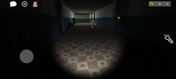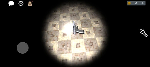 4、初始状态,玩家拥有手电筒(可关闭),左上角分别是来聊天、设置、以及背包,用于游戏中收集线索道具。