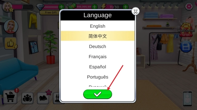 3、在列表里找到“简体中文”选项后,点击确认按钮,接着重启游戏,就能顺利完成语言切换了。