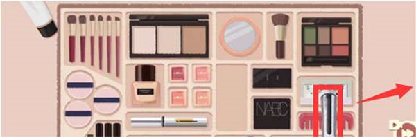 1、首先将每一个化妆品放到相应的格子当中。
