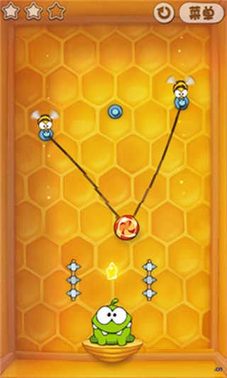 游戏由众多关卡构成,每个关卡中,糖果通过绳子悬挂,周围分布着各种机关和道具。玩家的目标是想办法让糖果顺利落入小怪兽奥姆口中。主要操作是通过触摸屏幕切断绳子,利用物理原理使糖果移动。同时,还能触发机关,如弹簧、风扇等,改变糖果的运动轨迹。有些关卡可能还需要按特定顺序操作多个机关。