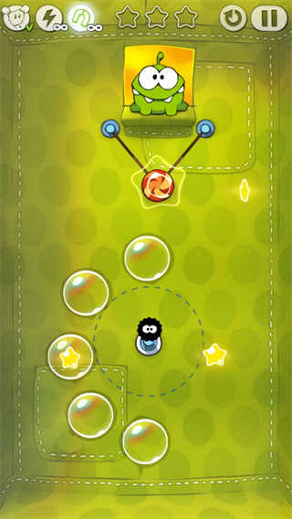 关卡中除了让糖果落入奥姆口中,还设置了一些星星作为收集目标。星星分布在糖果下落路径的不同位置,玩家需要通过调整糖果运动轨迹,使糖果在下落过程中触碰星星。收集到的星星数量会在关卡结束后显示,用于解锁新的关卡区域或兑换奖励。