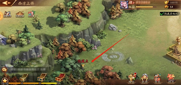 本章的隐藏点属于线索事件,得先获取线索才能触发。线索在地图上方的山脚下,你需要拾取那里散落的纸页,然后按照纸页上的指示,前往地图左下方貂蝉右侧石阶旁边的山脉,这样就能触发隐藏点了。