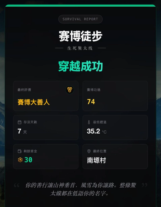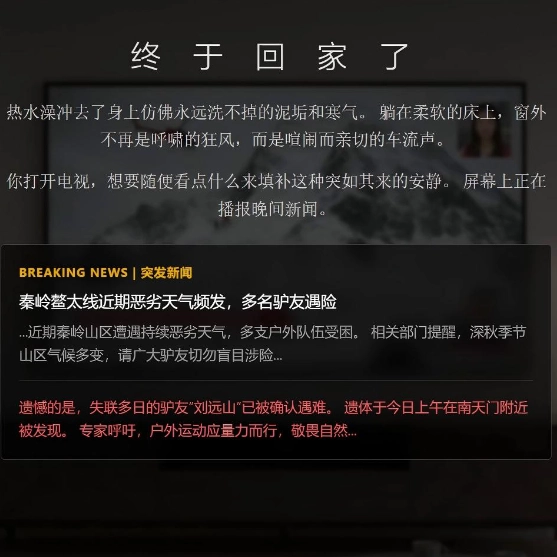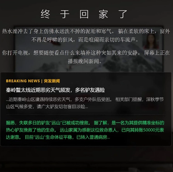 只有在选对,且资源和装备准备充足、运用妥当的情况下,玩家才有更大的机会穿越鳌太线。否则就会成为遇难者。