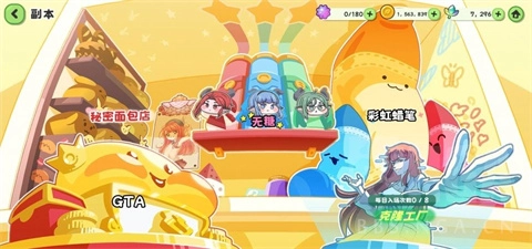 紫蜡笔、蓝蜡笔、白蜡笔对应角色属性加成,前期可积累用于关键角色培养。