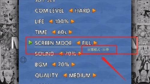 玩家在游戏中进入设置界面,找到屏幕模式,将其设置为“拉伸”即可达成全屏的显示效果