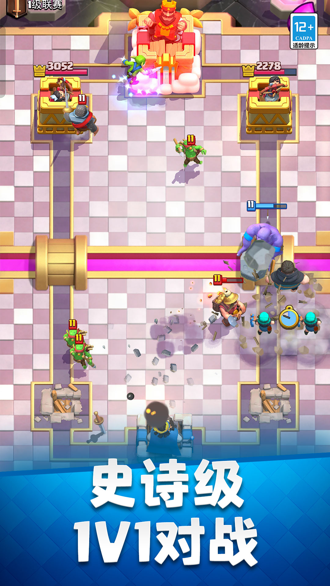 与各地的玩家,随时开启一场酣畅淋漓的爽快对决,摧毁对方国王塔,赢取宝箱解锁奖励,并在排行里夺得荣耀!