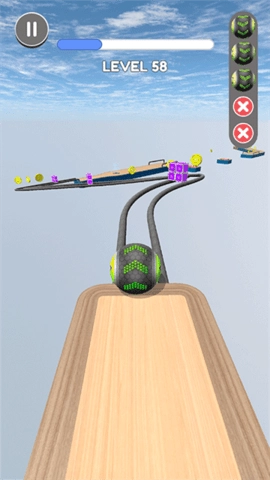 4、在享受滚动带来的畅快体验与扣人心弦的音效同时,精准把握时机以控制小球移动。