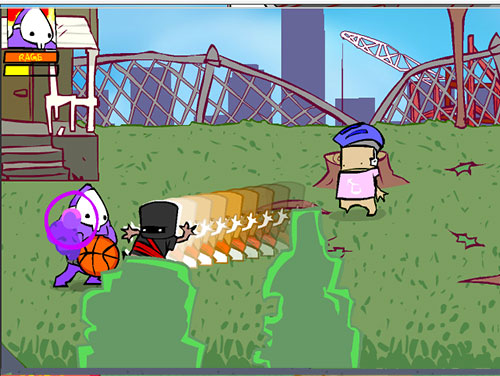 角色设计别具一格,玩家操控的角色形象简单却极具辨识度,与那些萌萌的小朋友敌人形成鲜明对比,为游戏增添了荒诞的趣味。