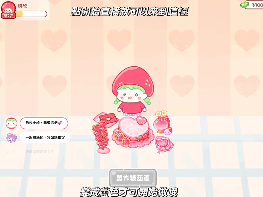 只有新鲜的水果的话,很难以一名吃播实况主存活下来。还要有松饼、地球软糖、青阳辣椒!利用奇特的材料制作糖葫芦吧。