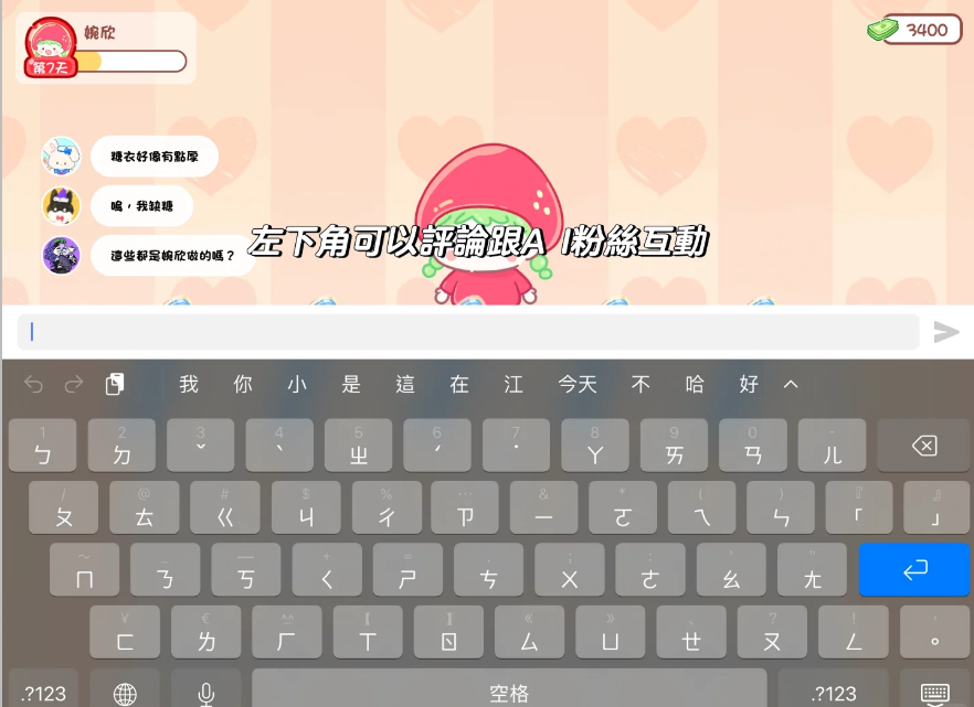 咔哒咔哒!今天的吃播也大成功。热烈的聊天内容看起来反应也不错。看来得利用完成观众任务得到的赞助金来买新材料了!