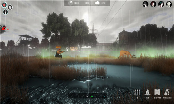 另外,游戏中还有超级多的玩法和细节体验。例如,烈酒可以取暖,当然也会喝醉;冰淇淋可以降温消暑;体力透支时赶路速度会变慢;不同子弹射击的音效和光效不同;温暖且降雨的天气植物生长的更快;废弃避难所可以一定程度的躲避炎热、寒冷,并且可以逃过野兽、追捕和雷击等;夜晚在废弃的避难所还可能会遇到幽灵等等!