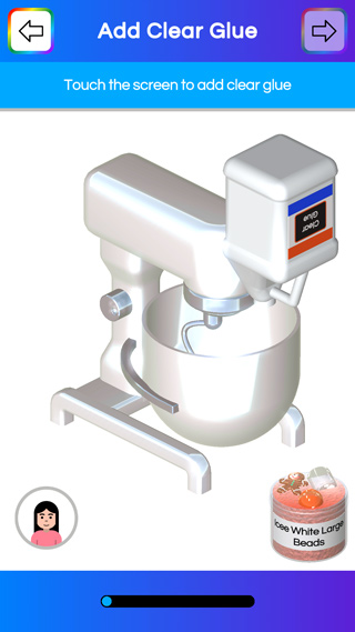 2、实时同步的时间更新,每日都有不同的粘液订单,点击选择“Sell Slime”,进入制作界面:根据指示,先选择一个搅拌机,接着点击屏幕添加透明胶水。
