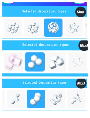 4、此刻来到了装饰环节,选择一种或多种装饰类型,如脆脆、珠子、立方体、水果等来确定粘液装饰环节。
