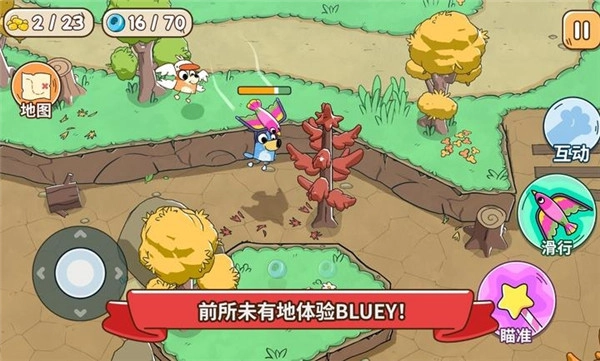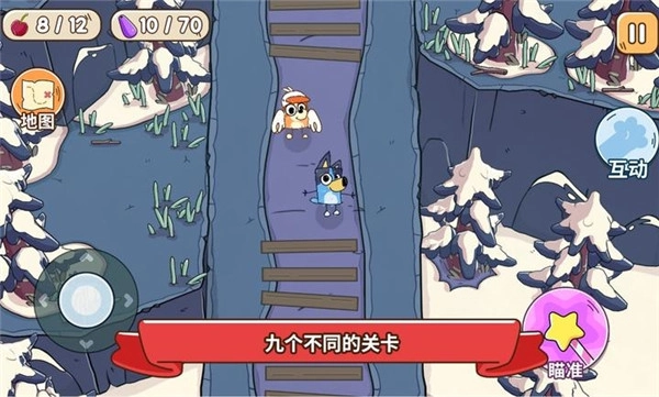 4、滑动屏幕控制布鲁伊滑行、飞行或滑冰,利用场景机关解开谜题。