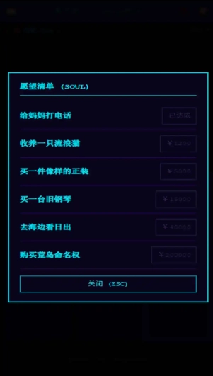 1、玩家完成愿望清单或健康归零分别触发两种结局。