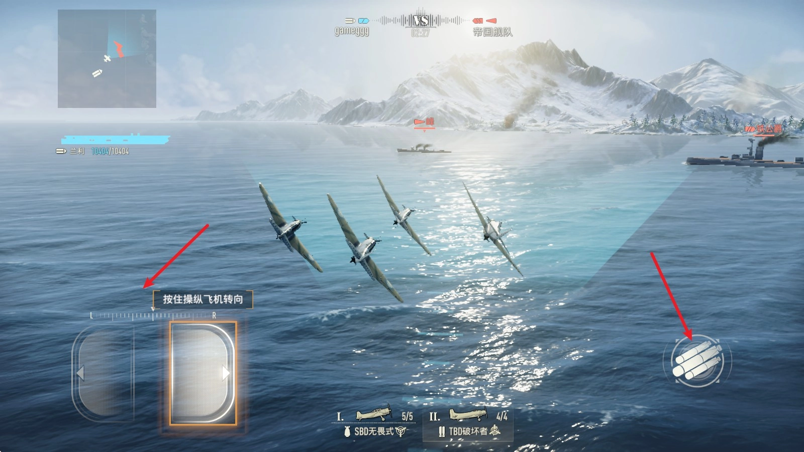 2、在海战打响前,我们能够操控飞机开展首轮轰炸,要挑选好合适的飞机组。