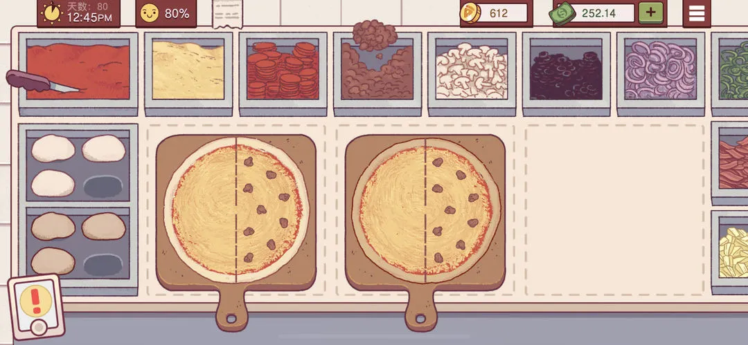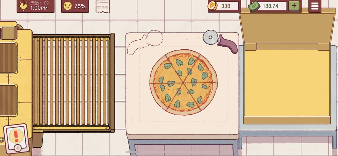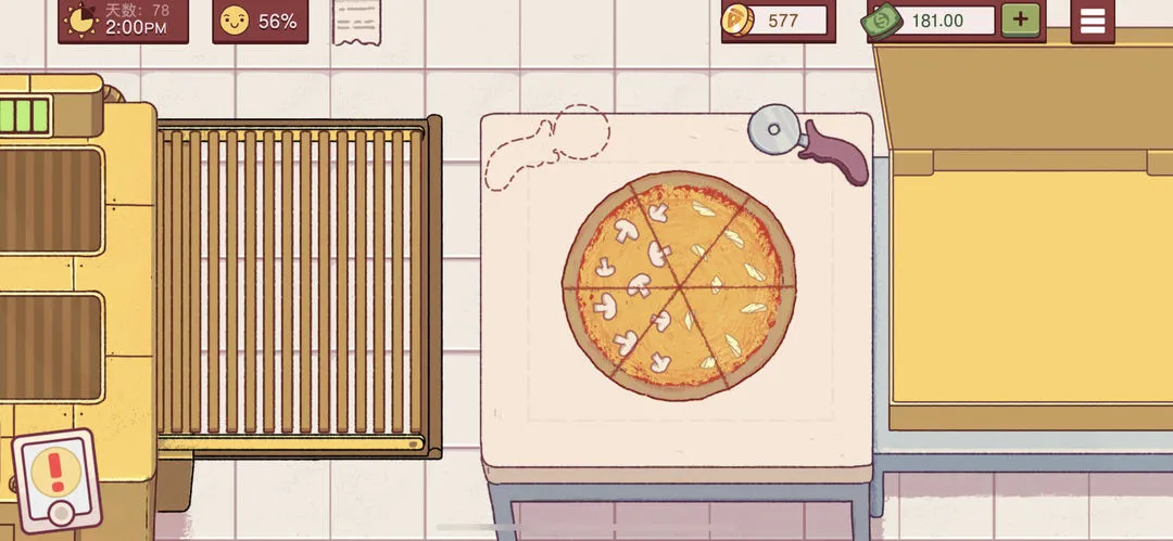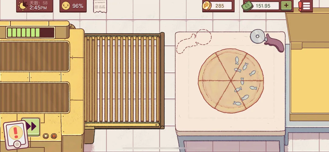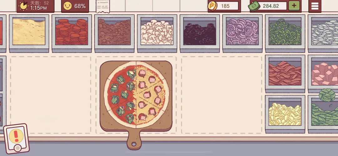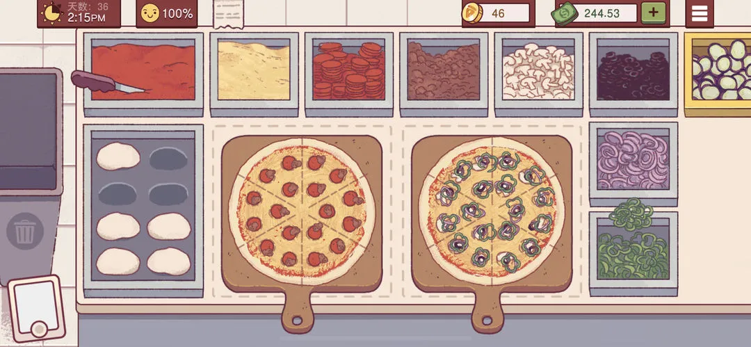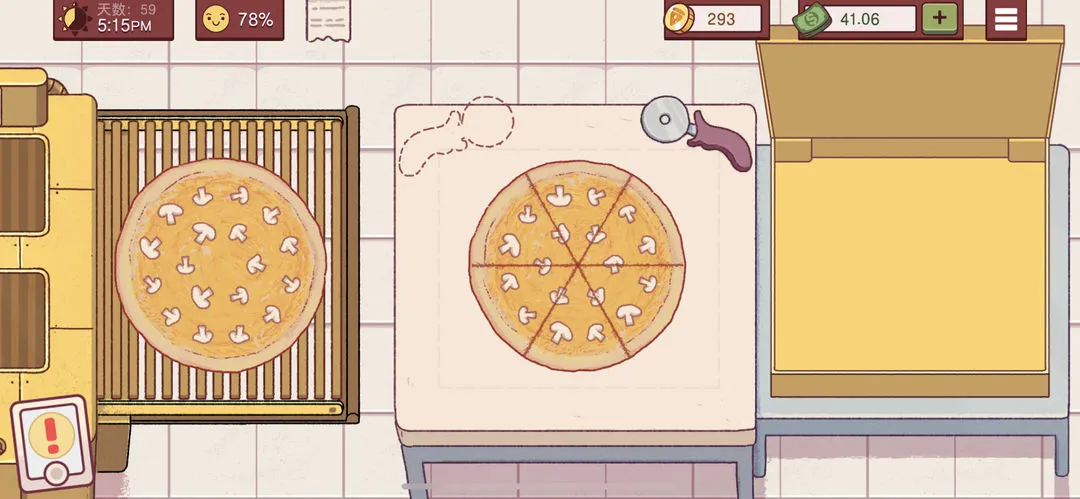 确保配料种类丰富,满足多样化订单需求。烤箱烤制机制模拟现实,不同尺寸面饼和配料组合对应不同烤制时间,保证披萨制作过程符合逻辑。