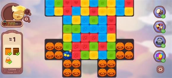 丰富城堡的元素,使城堡更加丰富多彩,同时收集到的饼干角色可用于关卡挑战。